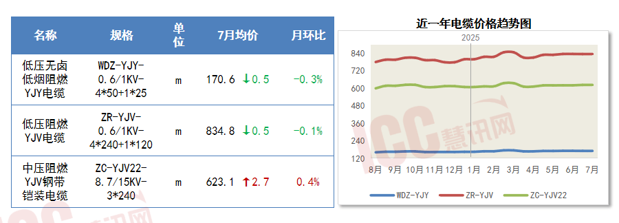 7月,7月电缆价钱呈区间震动运转。工业消费市场增加放缓,阀门出产成本下降,